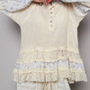 Designed in half balloon sleeve relaxed fit top in cotton with rib fabric patch, trim and pearl point, floral print patch, shirring with reverse ruffle and raw edge, edge cut opening detail, normal washing solid color.
